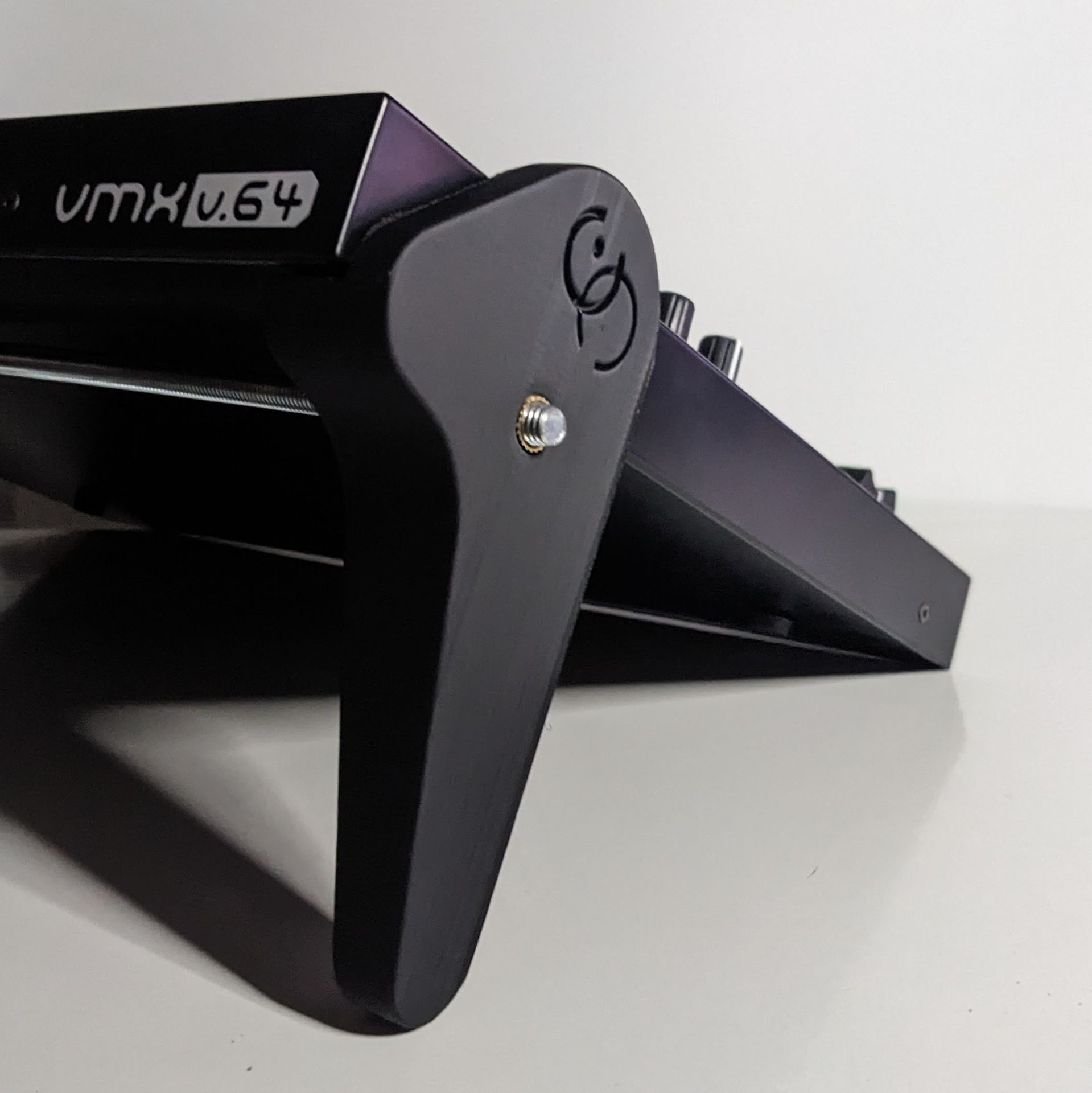 Création d'une solution originale et esthétique de support machine et contrôleur MIDI universel de 30° d'inclinaison.